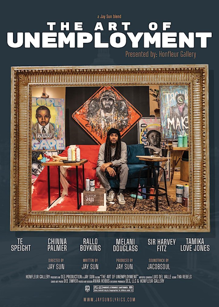 A multi-dimensional Art Exhibit featuring Visual Art,Culinary Arts, Music and anchored by the Film; The Art of Unemployment.
