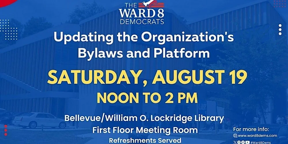 As we prepare for our biennial convention next month, we invite you to participate in a dynamic conversation around the revisions under consideration for the Ward 8 Democrats bylaws and platform.