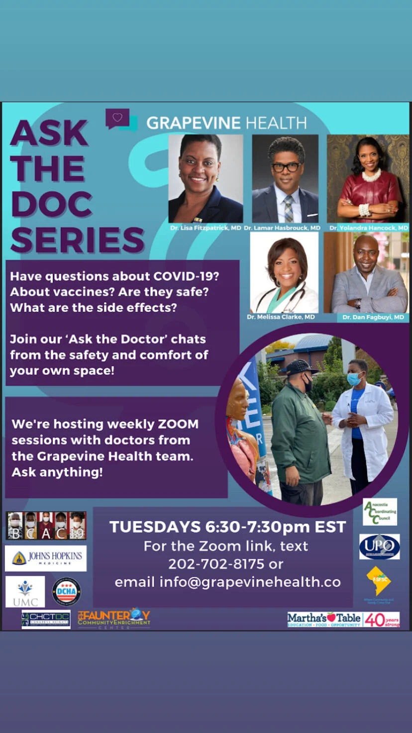 Text “Ask the Doc Series” to 202-702-8175 or send an email to: info@grapevinehealth.com.