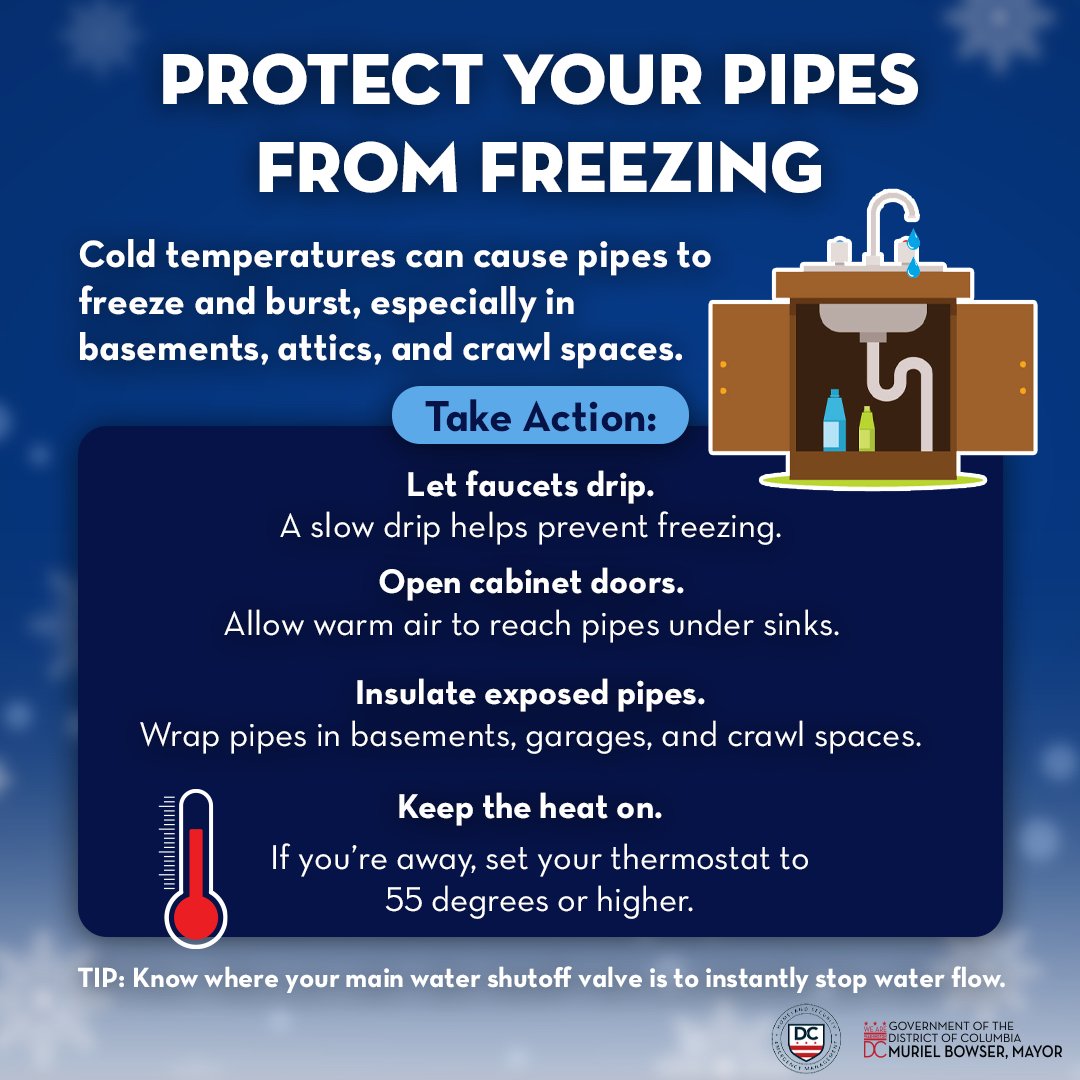 The District has shared helpful guidance and preparedness tips to help residents stay safe and protect their homes during extreme cold weather. Visit ready.dc.gov to learn more about how to prepare and what to do before temperatures drop further.