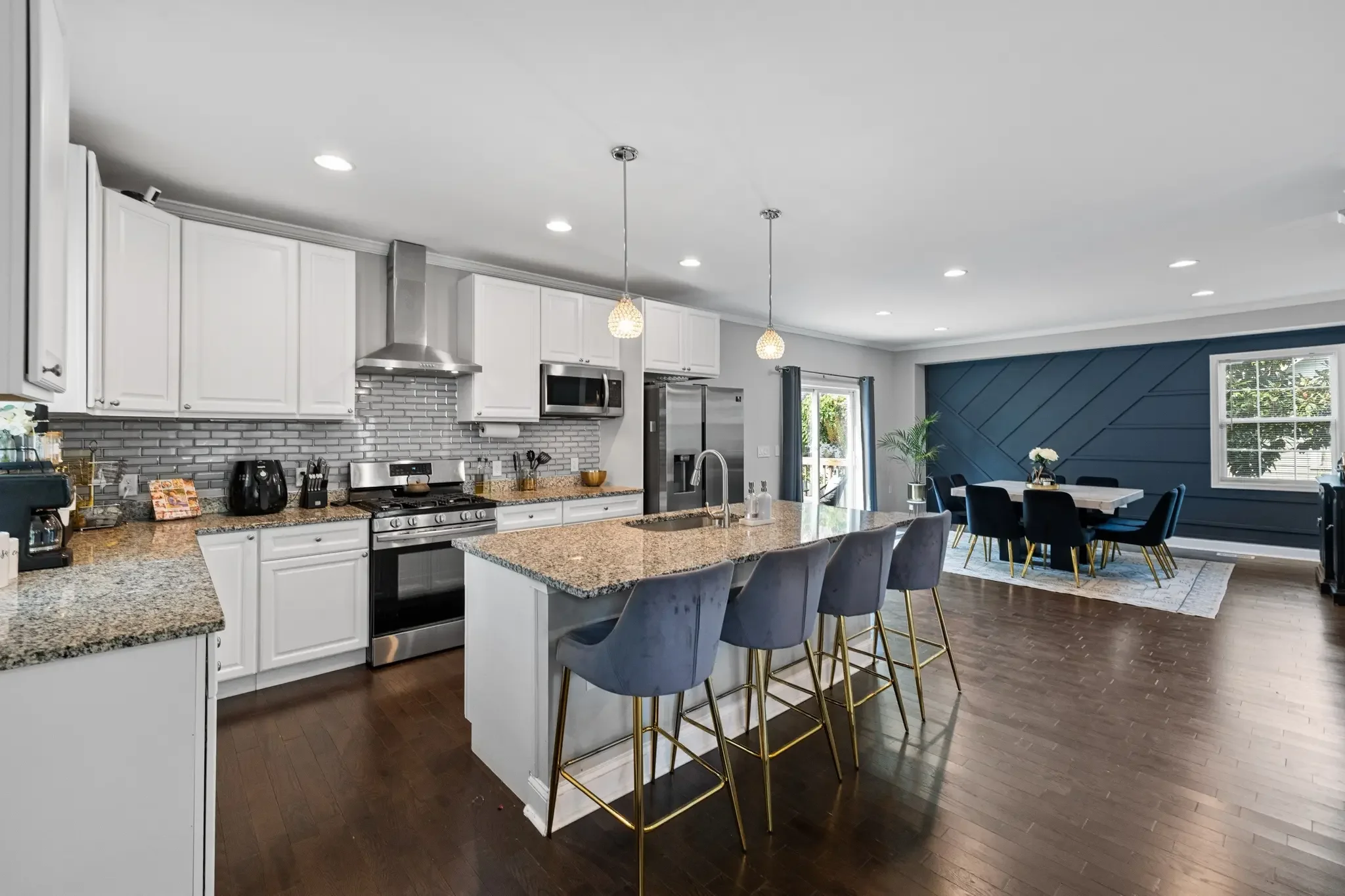 “Beautifully Updated Detached Home with Garage in Congress Heights! Welcome to this charming single-family home offering the perfect blend of comfort, style, and functionality. Start or end your day on the welcoming front porch—ideal for relaxing with a morning coffee or unwinding in the evening. Inside, enjoy an open and airy floor plan filled with natural light from surrounding windows. The spacious living room flows seamlessly into a gourmet kitchen featuring granite countertops, a stylish tile backsplash, gas cooking, abundant cabinetry, and a large island—perfect for casual meals or entertaining. A separate dining area provides space for formal meals and gatherings. Step outside from the dining room to a generous deck—ideal for outdoor dining or enjoying the fresh air. A rare main-level bedroom and full bath offer flexibility for guests or multi-generational living. Hardwood floors and recessed lighting enhance the main level’s warm and modern feel. Upstairs, the sun-filled owner’s suite includes a private ensuite bath. Two additional bedrooms, a full hall bath, and a convenient laundry closet complete the upper level. The finished walkout lower level, which may provide rental income, offers a versatile recreation room or second family room, a fourth full bathroom, and ample storage space. Enjoy the fully fenced yard—great for entertaining, pets, or play. Garage parking and additional off-street parking provide ease and convenience in the city. Don’t miss this move-in ready gem in vibrant Congress Heights!”