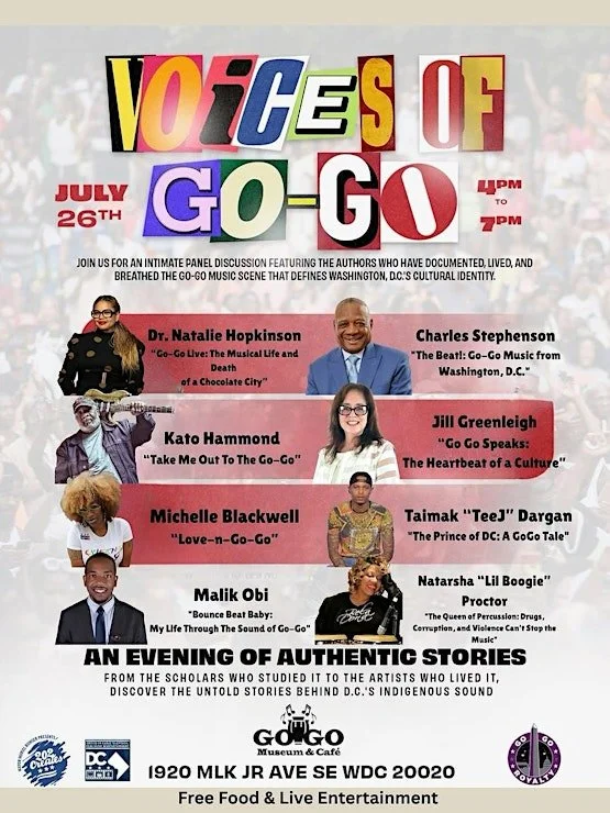 On Saturday, July 26th at 4:00 PM, the Go-Go Museum & Café will host an intimate panel discussion featuring authors, artists, and culture bearers who have documented, lived, and breathed the go-go music scene—an essential part of Washington D.C.’s cultural identity.