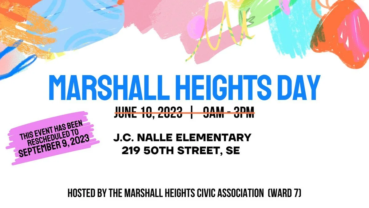 Due to recent air quality issues, we have decided to reschedule Marshall Heights Day to September 9, 2023. Please share and spread the word!