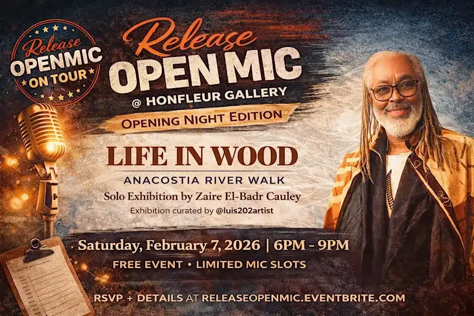 The opening reception will feature a special Release Open Mic, inviting community voices into conversation with the exhibition.