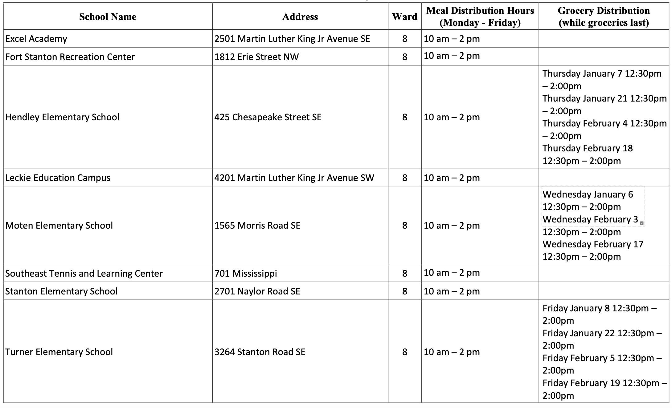 There all meal sites in every ward! This list is effective January 4, 2021.