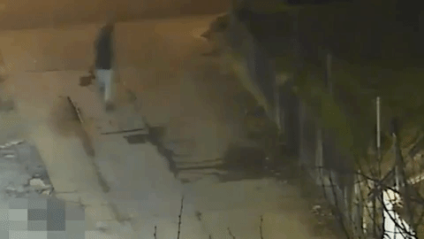 The suspects were captured by a nearby surveillance camera and can be seen in this video: