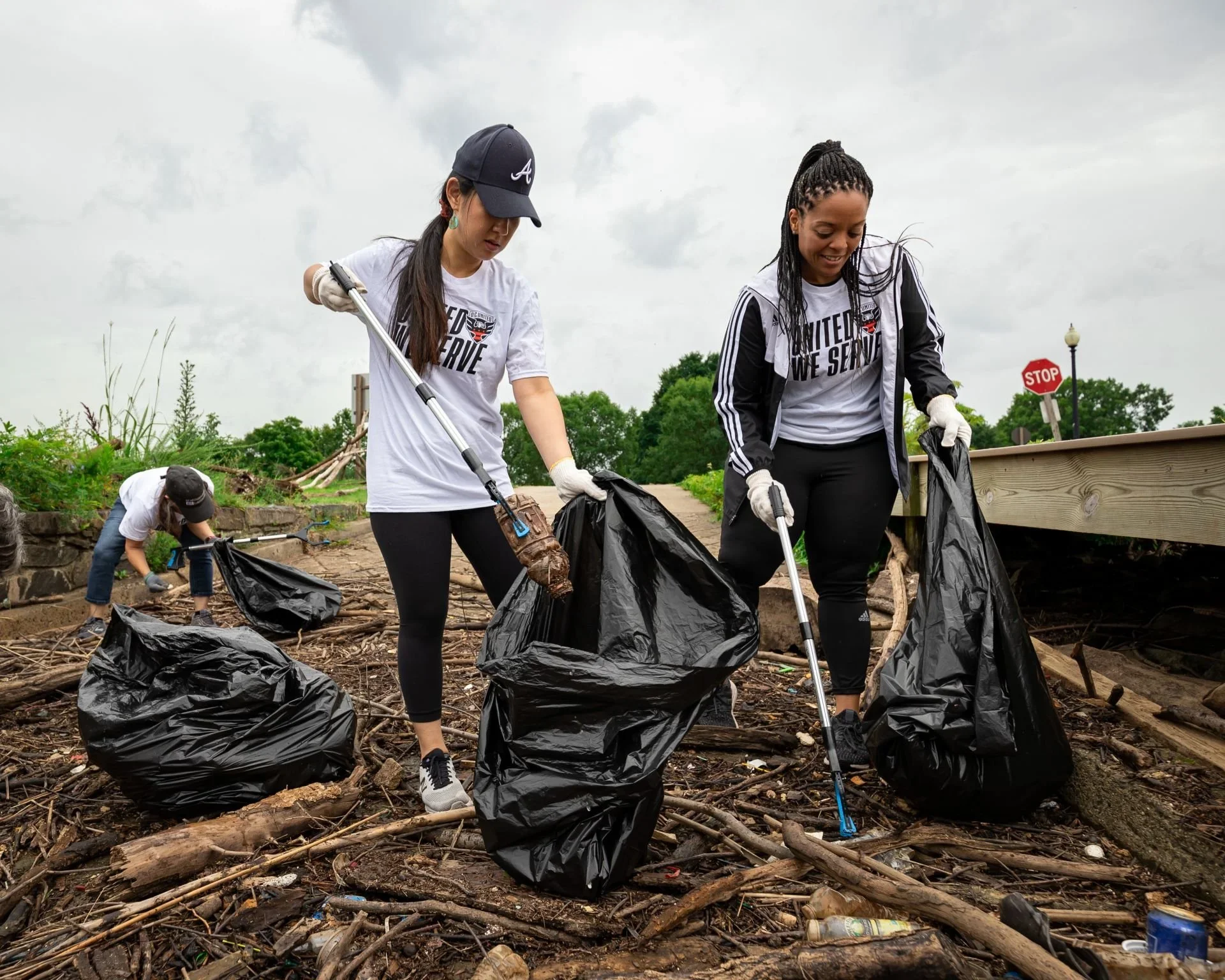 Picking up litter and removing invasive species