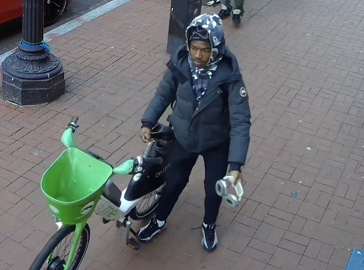 On Friday, March 13, 2026, at approximately 5:01 p.m., the suspect, who was on a bicycle, approached the victim in the 1900 block of 14th Street, Northwest. The suspect snatched the victim’s headphones and then fled the scene.