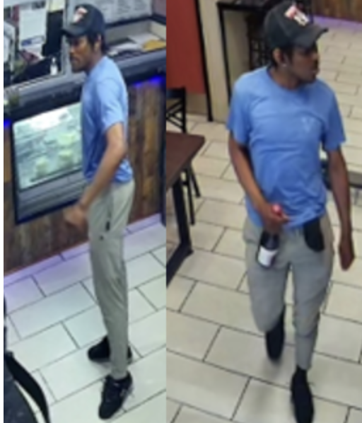 On Saturday, April 4, 2026, at approximately 3:27 p.m., the suspect and the victim were involved in an argument inside of a pizzeria in the 1500 block of 7th Street, Northwest. The argument escalated when the suspect began to choke the victim. A customer attempted to intervene, and the suspect brandished a knife and threatened the customer. An employee pulled the customer into the employee area. The suspect took a bottle of wine before fleeing the restaurant. There were no reported injuries.
